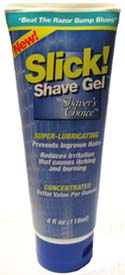 Slick! Shave Gel ($4.99) straightens and lifts the hair (for a closer shave), protects the skin from blades and dries the hair left in its follicle straight, to resist hair's natural urge to curling back into your skin. Smooth! Skin Therapy ($4.99) contains mink oil which treats hair in the follicle and prevents razor bumps, ingrown hairs, razor burn and itching.