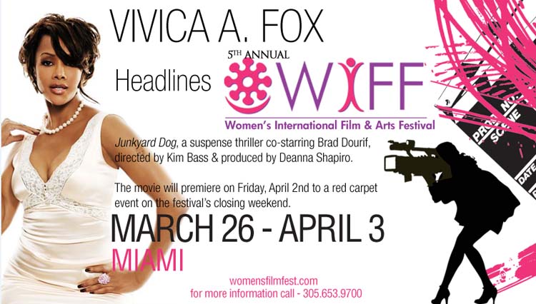 Miami, FL (BlackNews.com) -- The Women's International Film and Arts Festival will be celebrating its 5th anniversary from March 26th April 3rd, 2010 in Miami, Florida. The headline movie for the Festival features Hollywood Starlet, Vivica A. Fox in Junkyard Dog, a suspense thriller co-starring Brad Dourif, directed by Kim Bass and produced by Deanna Shapiro. The movie will premiere on Friday, April 2nd to a red carpet event on the festival's closing weekend. The 5th annual Women's International Film Festival (WIFF) promises to be internationally star packed. With almost 400 films received from more than 30 countries this year, the nine day festival will screen 68 films all about women in one of the most popular cities of the world--Miami. This year's films feature notable actors from around the world such as: Ali Zahoor (The EastEnders), Hassani Shapi (Star Wars I & II and James Bond: The World is Not Enough), Narinder Samra (Silver Street), Christopher Villiers (Bloody Sunday), Elaine Hendrix (Parent Trap), Holly Robinson Peete (Hangin' With Mr. Cooper), Vanessa Simmons (Run's House, Daddy's Girls), Natasha Lyonne (American Pie) and many more. This year's event will feature the festival's "WIFF Around the Globe" theme. A nightly celebration focusing on regions of the world: North America, Africa & Its Diaspora, Europe, India, Asia and the Caribbean with films, food, drinks and other cultural components. In addition, on March 28th there will be a Celebration of Women Concert/Family Fun Fest featuring Sony Latin America Artists. The festival also offers the "Women's Empowerment Series" hosted by the University of Miami, which presents films addressing women's issues. WIFF has garnered unwavering support by many of the most prominent women in the industry and South Florida. Notable mentions include Emmy, Grammy & 2008 Golden Globe Award Winning Actress (American Gangster) and WIFF Founding Honorary Chair Ms. Ruby Dee; and 2010 Honorary Chair Rep. Debbie Wasserman Schultz, US Congresswoman; 2007 Oscar nominee Adriana Barraza ("Babel"); "The Breakfast Club's" Alley Sheedy, international performing artist Lucrecia, Nighttime TV host Chelsea Handler and many more. "I am honored to participate in the 5th annual Women's International Film Festival. This festival not only showcases the talent of women across the world; it brings them together to share in a dialogue about issues concerning women through arts," said Congresswoman Debbie Wasserman Schultz. The Festival is anticipating over 10,000 attendees for this year's event. 2010 sponsors include Sony Music- Latin, The Miami-Dade County, City of Miami, United States 2010 Census, Barefoot Wine and Bubbly, New Times, WLRN, WPBT, Miami Science Museum, The Opium Group, ICY Public Relations, Greater Miami Host Committee Inc., Mega TV, GoLiveMiami.com and Opera Suites and Marina. About The Festival It is one of only two film festivals in the Southeastern United States specifically dedicated to women, recognizing their brilliance and accomplishments. The opening night of the festival will be held at the Miami-Dade County Auditorium, 2901 W Flagler St, Miami, FL 33135 on Friday, March 26, 2010. For a preliminary listing of the 2010 Festival films, log on to www.wiffonline.org/program.php.
